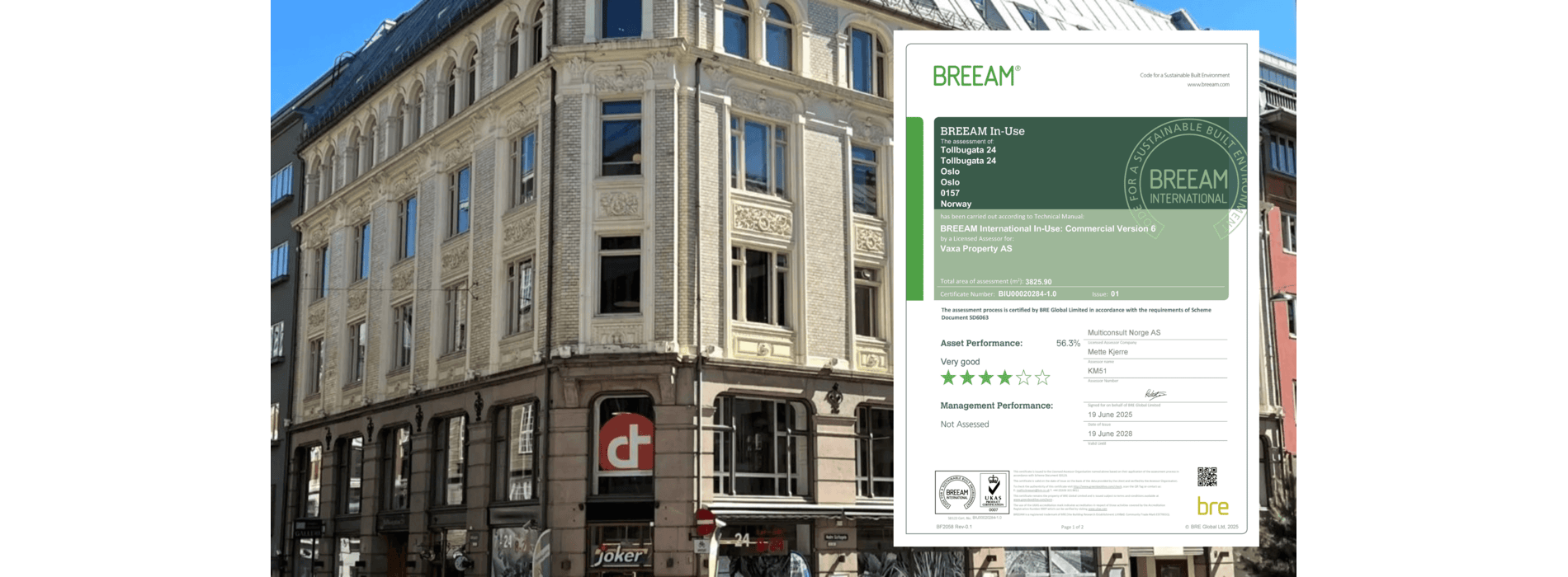 🏡Tollbugata 24 har oppnådd karakteren Very Good, og viser også tydelig sin miljøprofil.