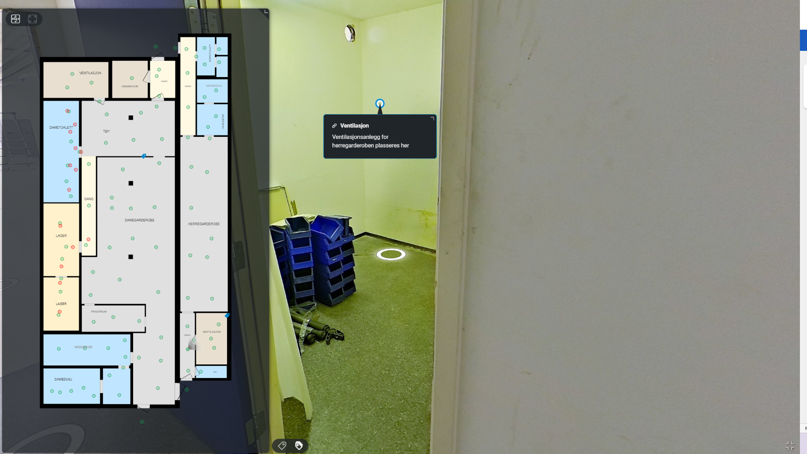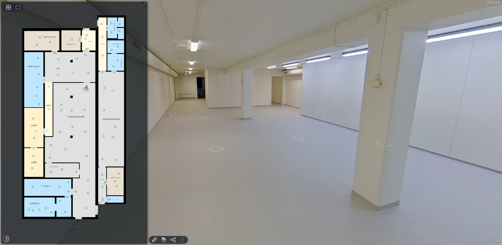 – 360-fotografering med laseroppmåling for oversikt over arealer.