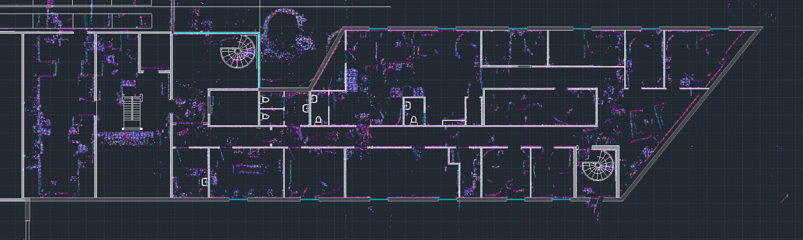 Etterpå ble dataene og punktskyene prosessert for å kunne tegne plantegninger.